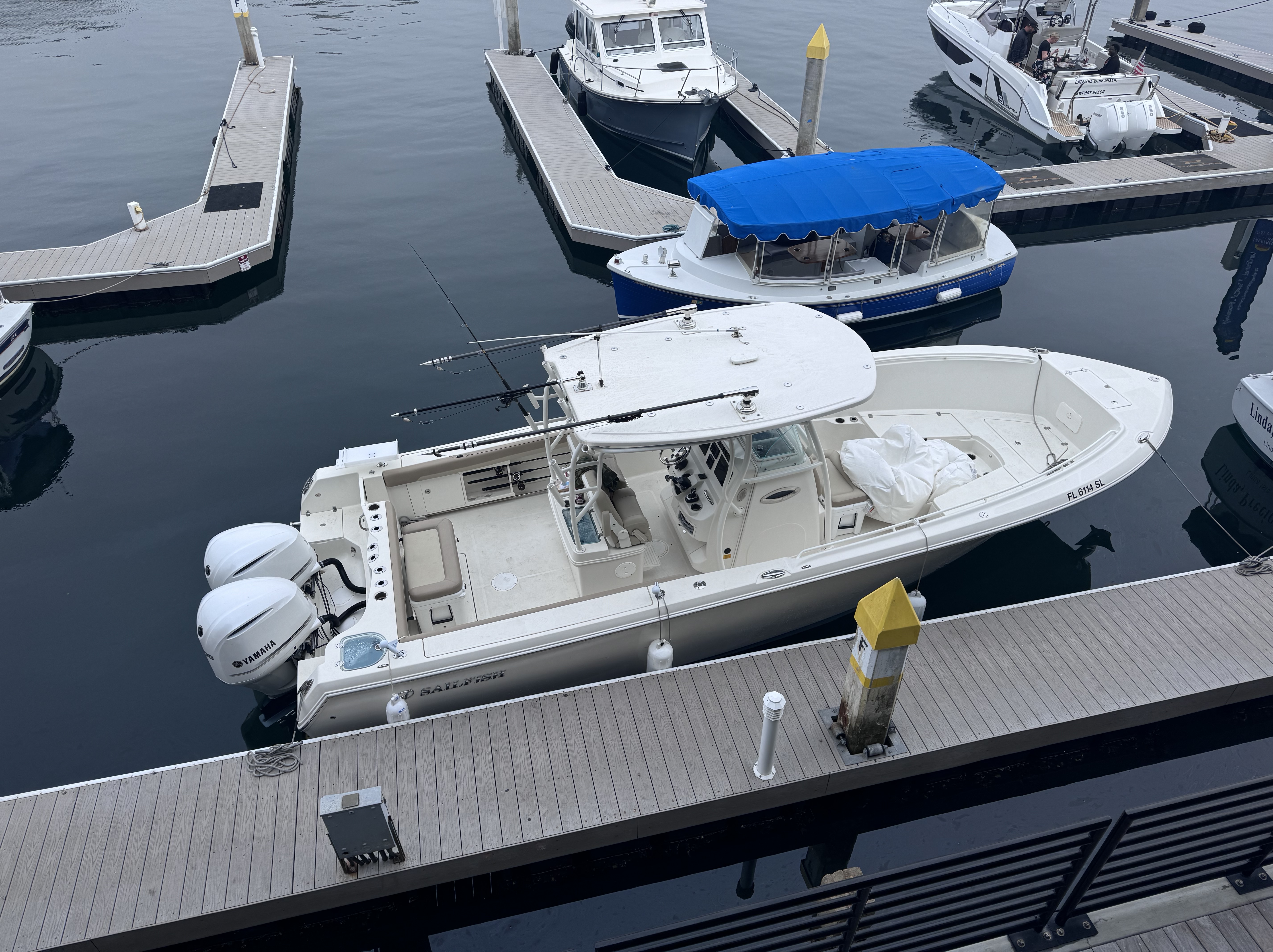 32′ center console Sailfish with two 300 HP Four Stokes. This is a Coast Guard Documented vessel certified as a yacht with all Coast Guard required equipment on hand. This platform is a trusted hull for open ocean adventures, providing ample deck space for fishing, diving or simply enjoying the water with friends and family.